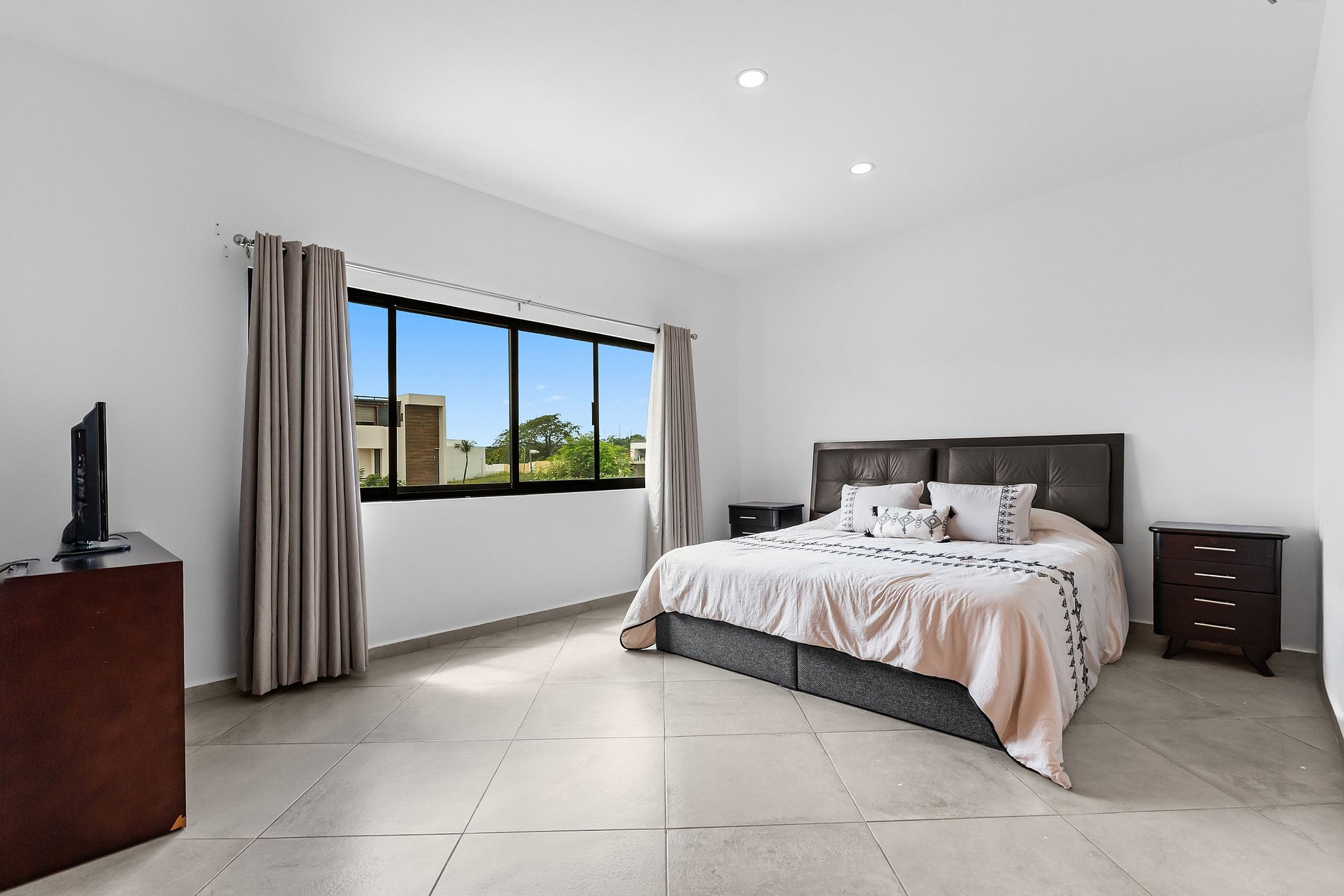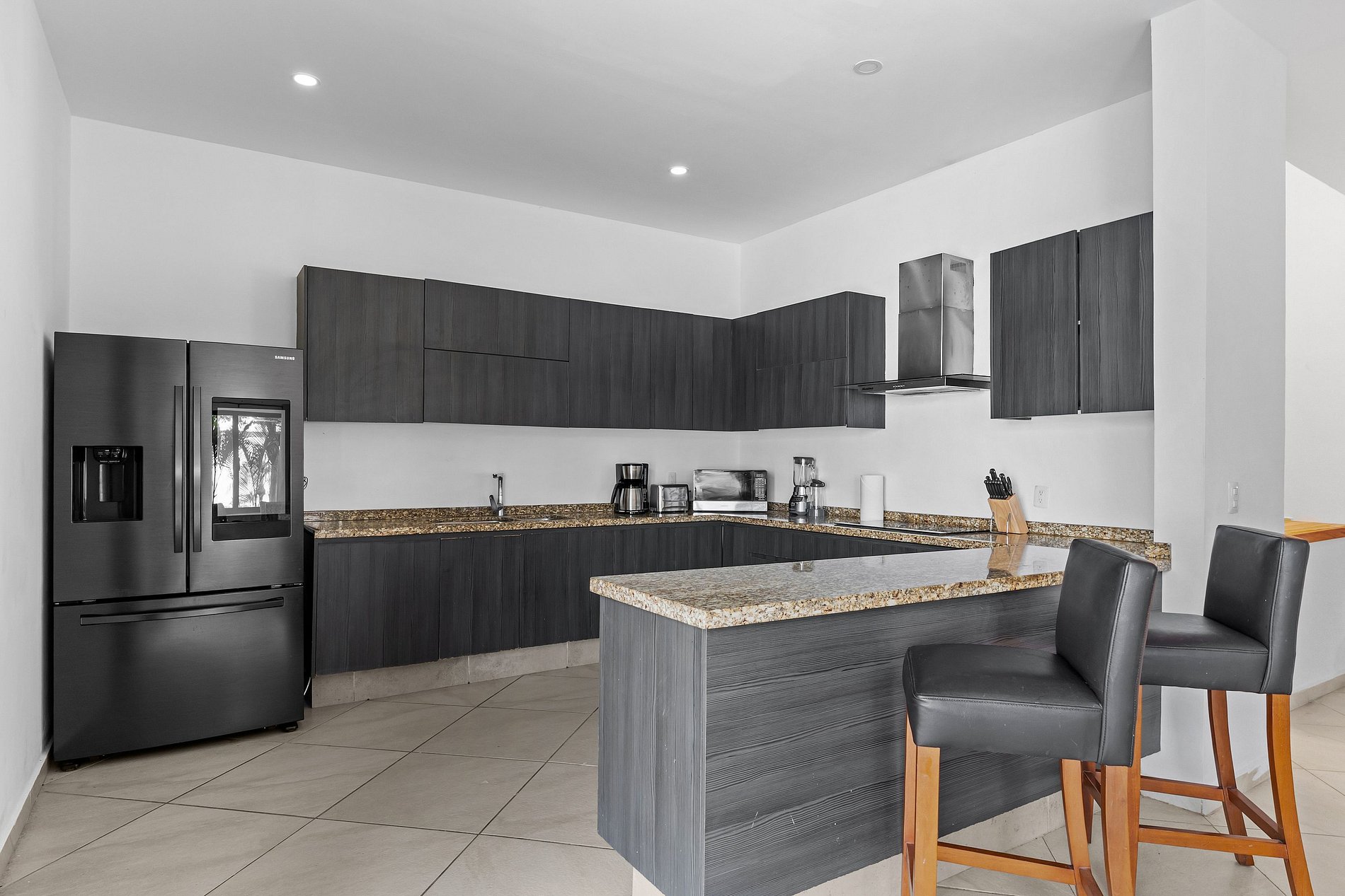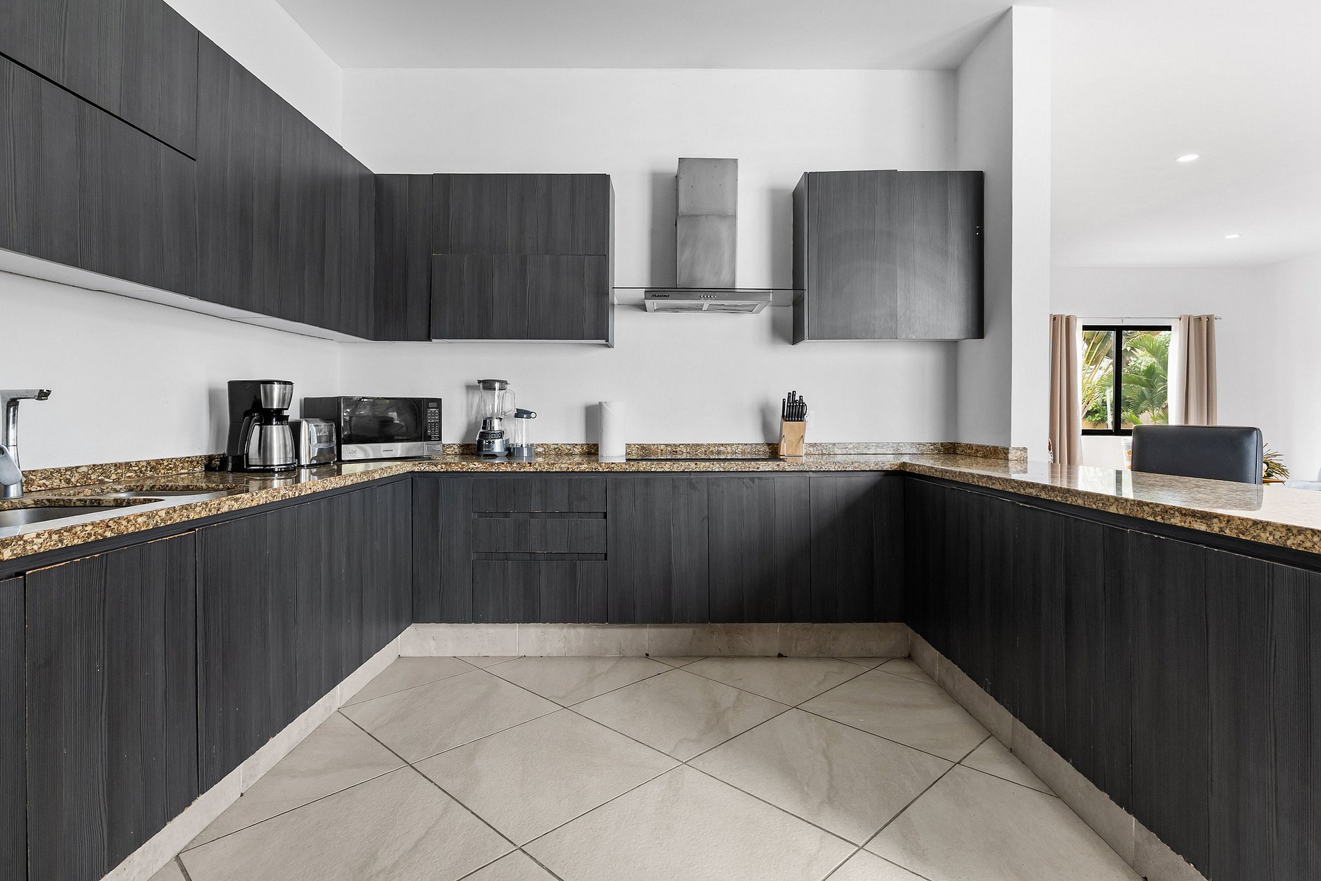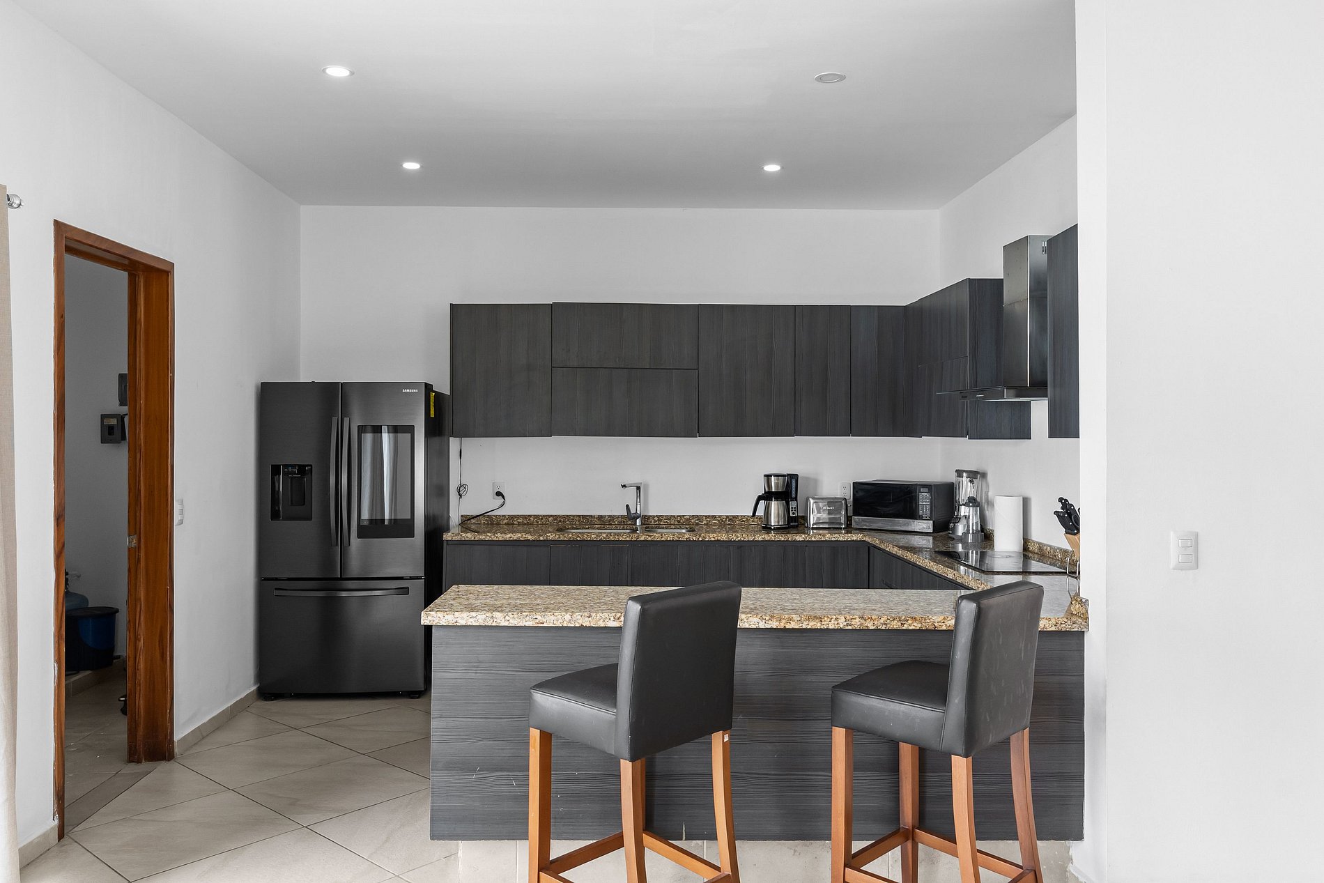 Welcome to Casa Oasis, your tropical escape in the secure, gated community of B-Nayar. This stylishly decorated villa features 4 bedrooms: a spacious primary suite with a 2 double beds and a sofa bed, second bedroom with a full-size bed and a sofa bed, third room with a king size bed, and a 4th room in the first floor with a twin bed. The upstairs living room also includes 2 comfortable sofa beds—perfect for extra guests. Every room has its own full bathroom. The open-plan living/dining area are fully air-conditioned with mini-split units for year-round comfort. There is a powder room as soon as you com in the villa as well as a bathroom next to the pool no need to go into the house when your having fun.