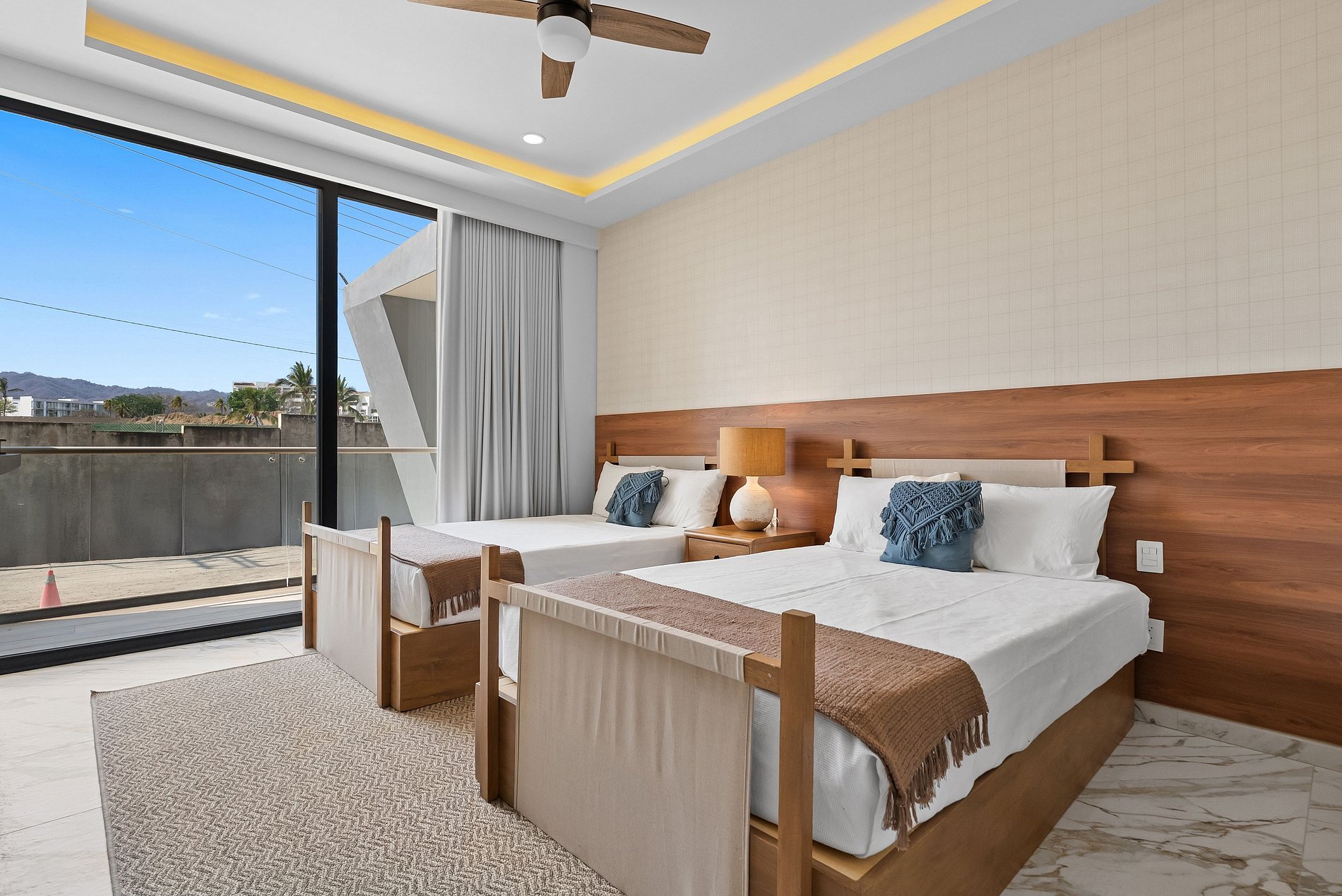 This spacious 3-bedroom, 3-bathroom luxury condo is designed for comfort, style, and effortless indoor-outdoor living. The open-concept layout features a bright modern living area and a fully equipped kitchen, perfect for gathering and entertaining. Each bedroom offers comfort and privacy, making it perfect for families, groups, or longer stays seeking a high-end experience in La Cruz de Huanacaxtle.