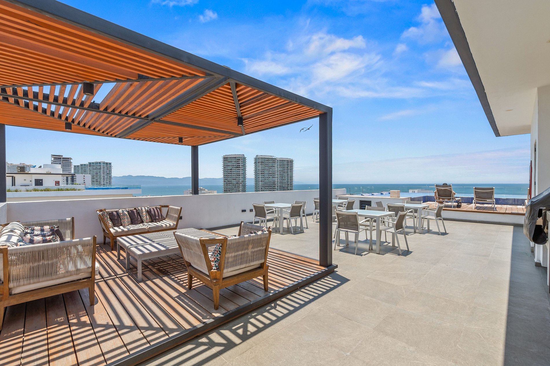 Ocean View Apartment at Zoho Skies Free Airport Shuttle from Puerto Vallarta International Airport with bookings of 5 nights or more Stunning 2-Bedroom, 2-Bath Apartment Enjoy modern design and comfort with: Spacious open living areas Fully equipped kitchen Elegant finishes Incredible ocean views Exclusive amenities: Infinity pool Gym Sky Lounge