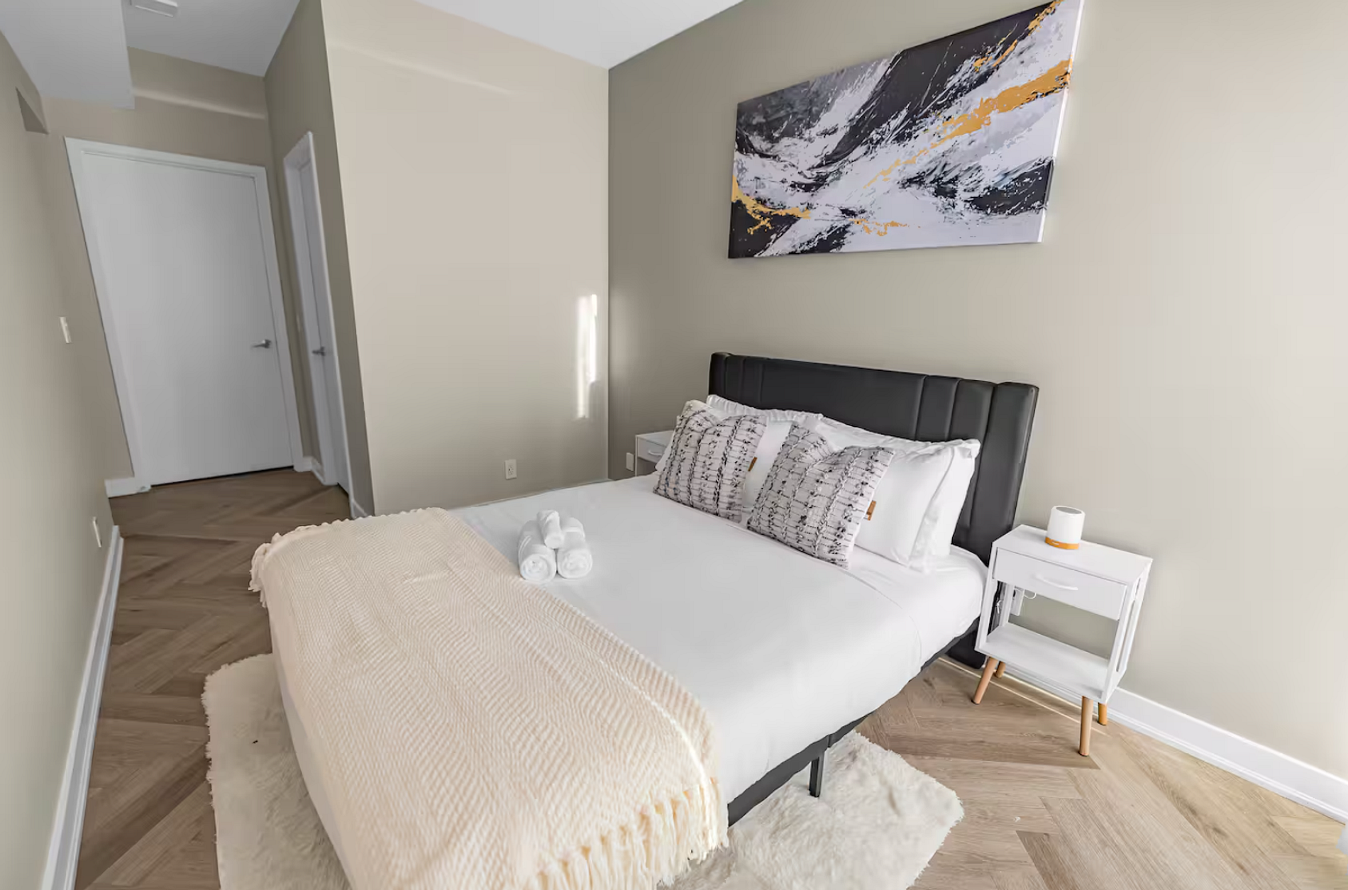 Enjoy a stylish experience with this unit is located in the heart of the city within walking distance to many of Toronto's most popular tourist destinations. Steps away from the Budweiser stage, minutes from Scotiabank Arena and CN Tower, Rogers Centre, Ripley' s Aquarium and much more. Master bedroom with queen size bed, second bedroom full size bed. Stocked kitchen, SMART TV, WIFI.