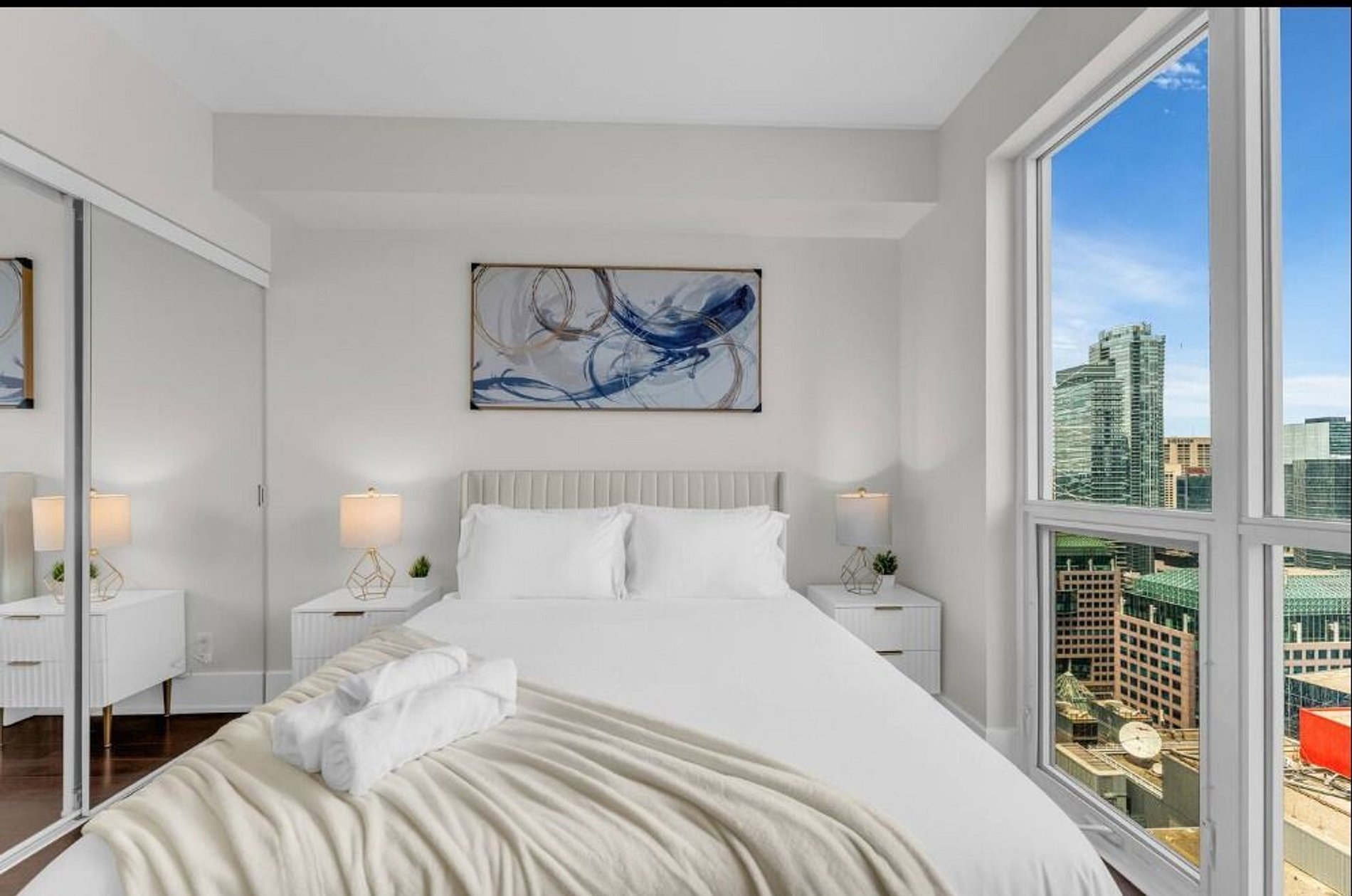 Experience luxury in this stunning 2-bedroom condo that sleeps 8, featuring breathtaking views of the CN Tower, waterfront, and skyline. Enjoy the rooftop pool with unparalleled city views and cabanas for all guests. Located beside the CN Tower in downtown, perfect for business, families, or friend gatherings, with everything within walking distance. Includes 2 Queen beds in the bedrooms, sofa/modular bed in the living room, and a queen sized air mattress + all building amenities included!
