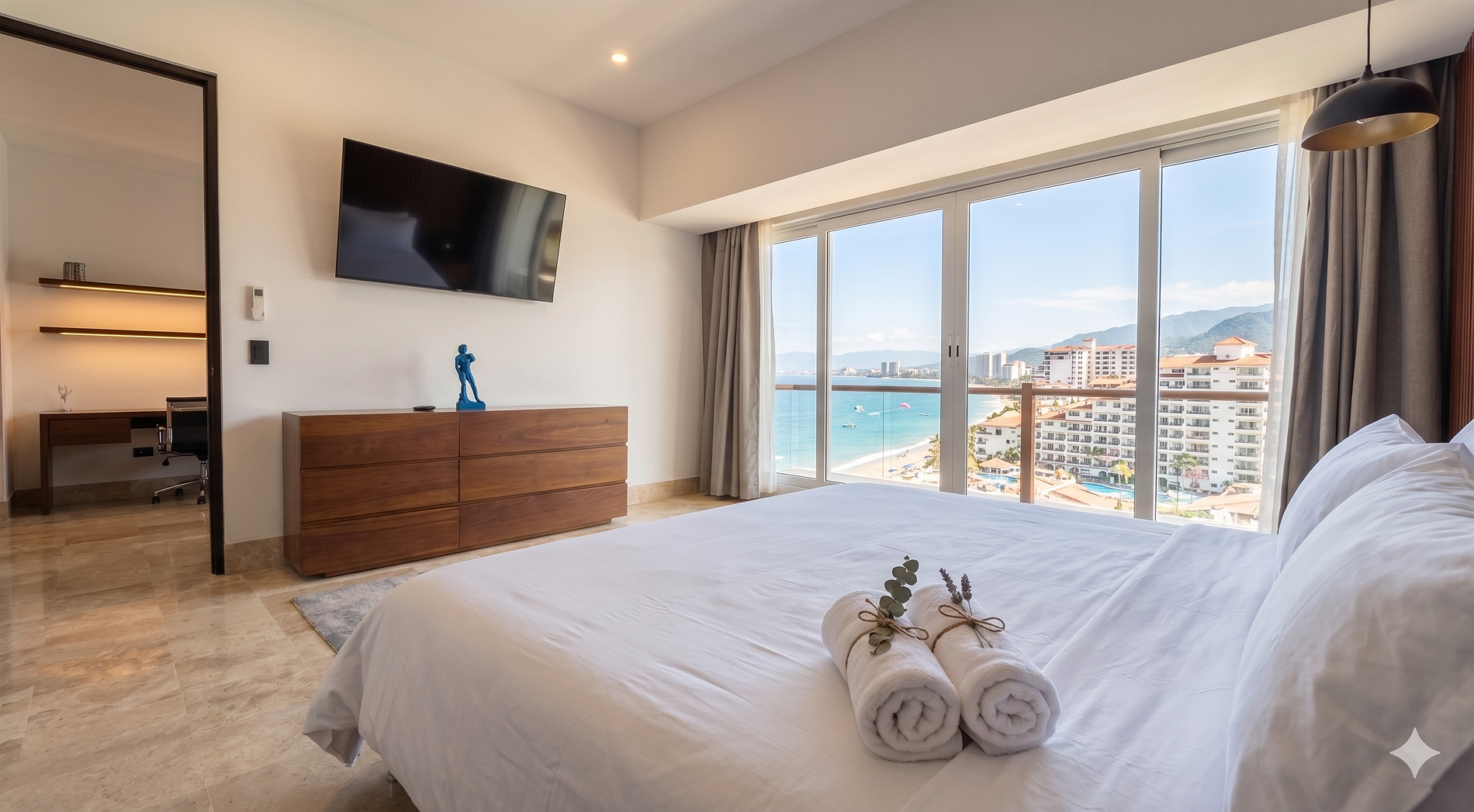 Enjoy beachside living in this stylish 2-bedroom, 2-bath condo at Deck12—just 3 minutes from the sand in Puerto Vallarta’s Hotel Zone. Perfect for families, sleeps 6 with a King bed, 2 double beds.