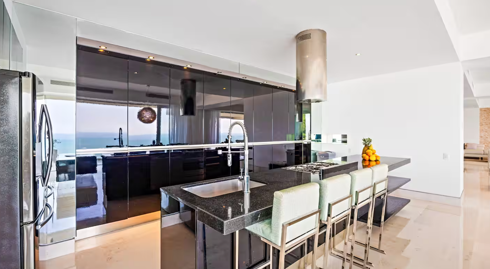 Diseñadas con un estilo moderno y refinado, las áreas de estar abiertas fluyen sin problemas hacia el océano, creando una sensación de paz y conexión con la naturaleza. El alojamiento incluye una amplia sala de estar, un elegante comedor, una cocina gourmet totalmente equipada y un cómodo espacio para lavar la ropa, lo que garantiza comodidad y conveniencia durante tu estancia.