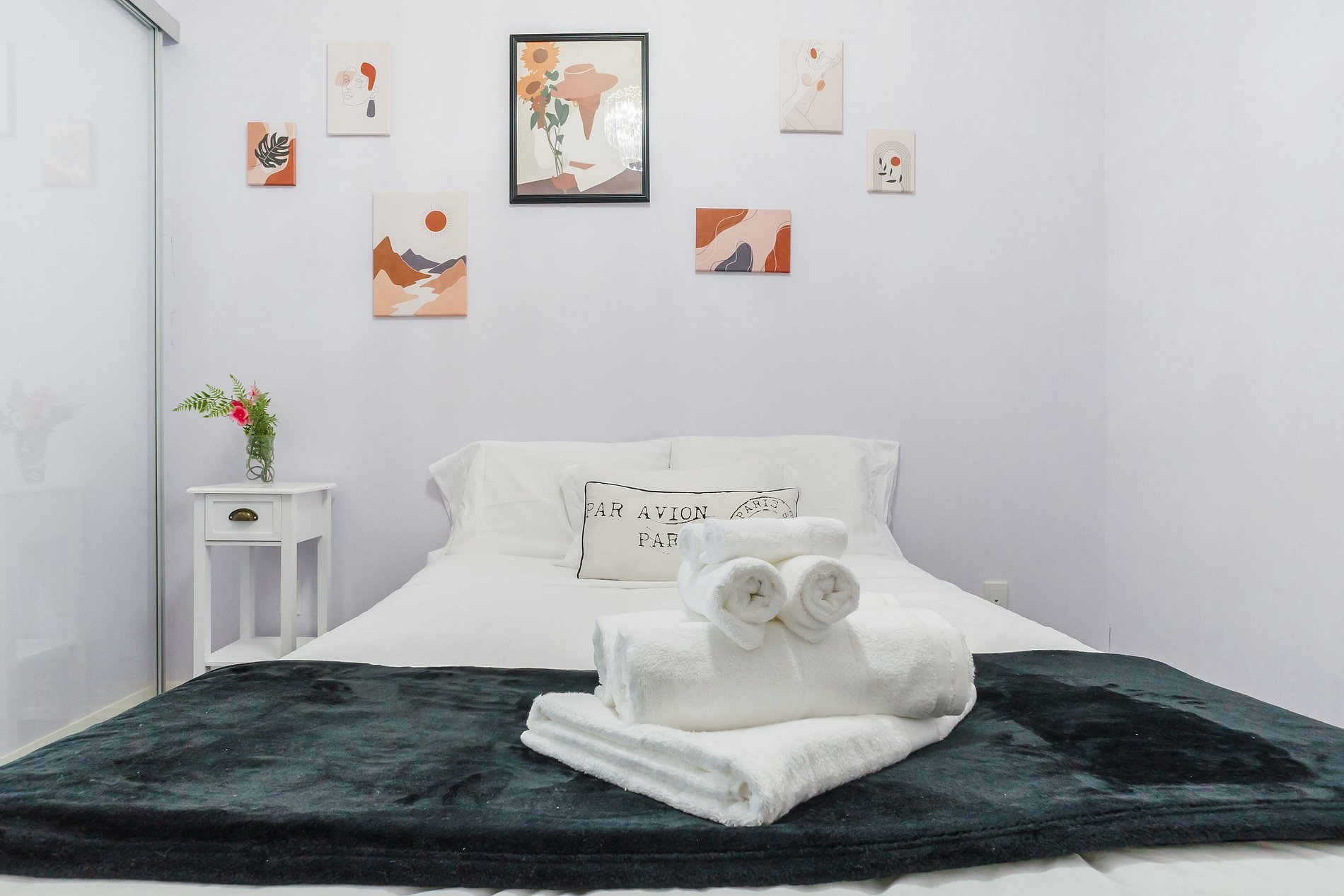 Los huéspedes tienen acceso completo y privado a todo el apartamento, incluyendo todas las áreas de estar, cocina, baño, lavandería y balcón, así como a las comodidades permitidas del edificio.