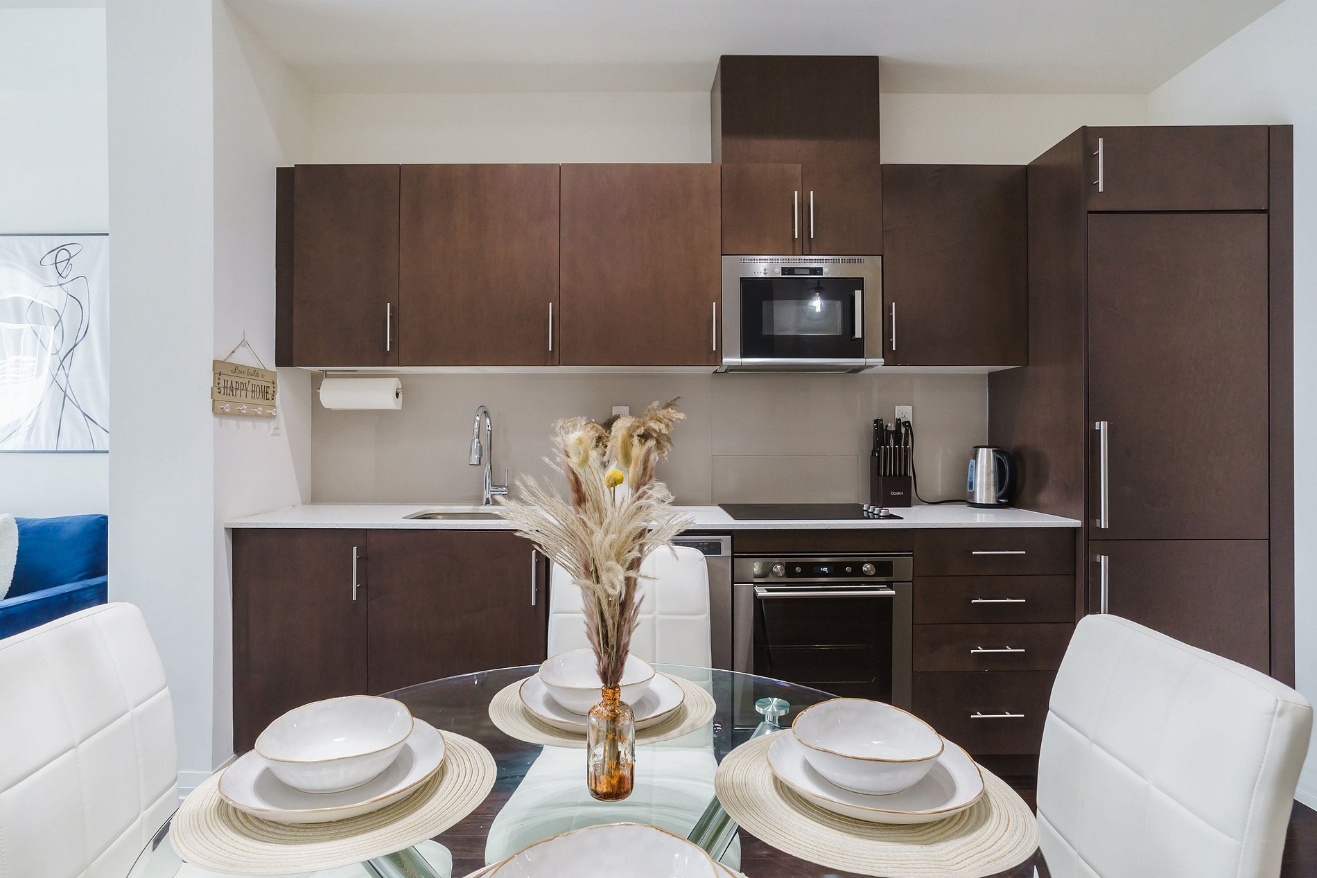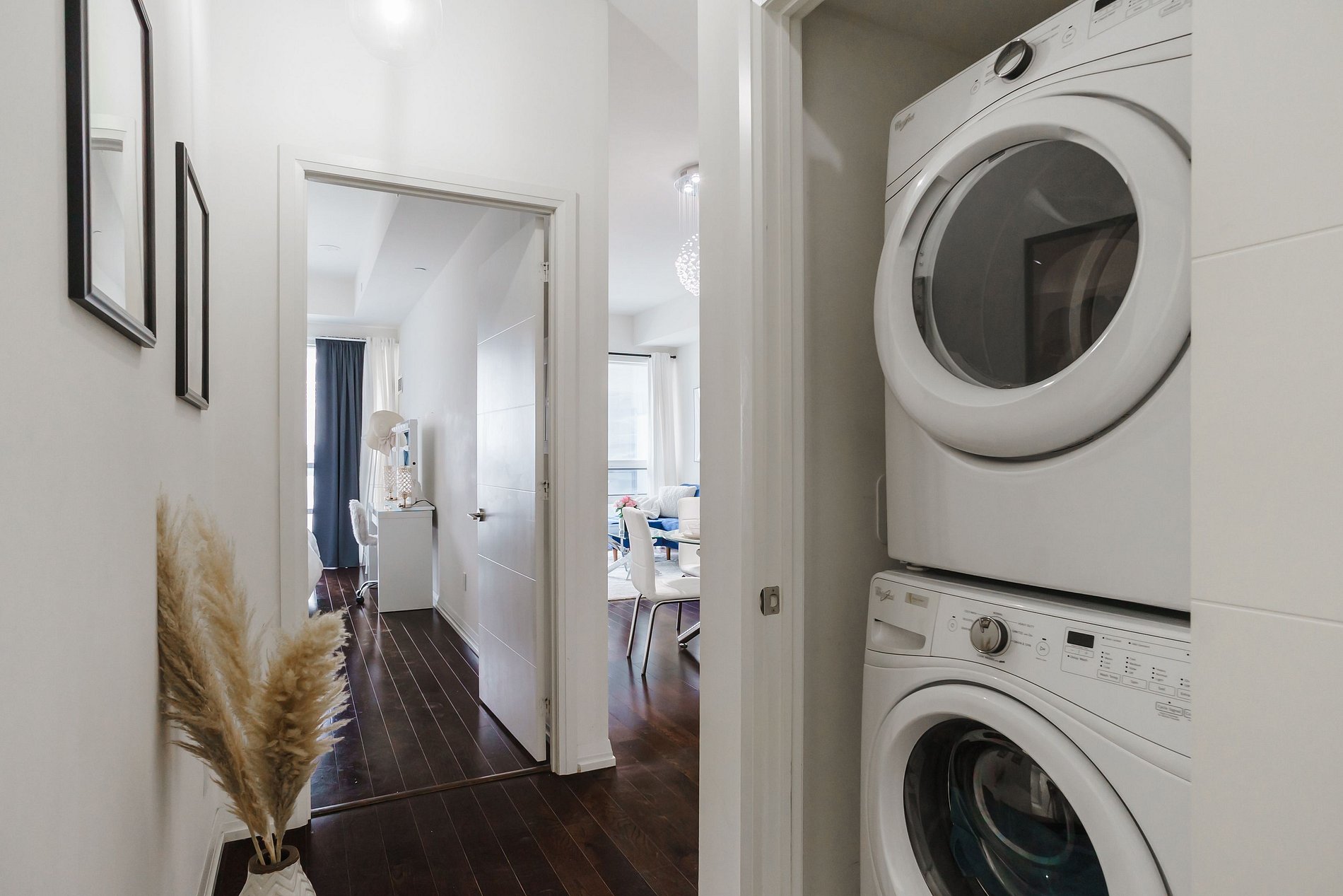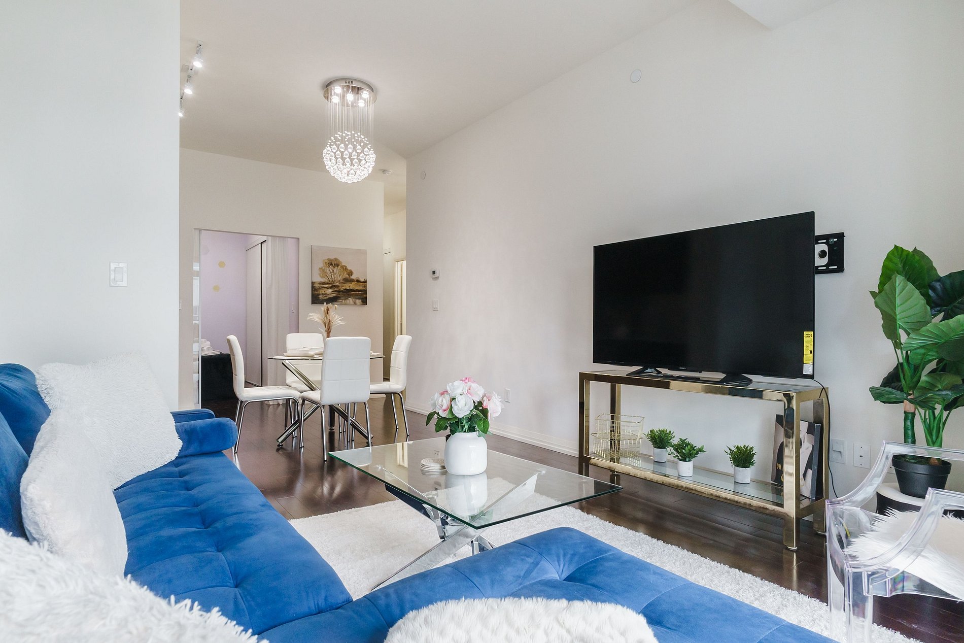 Disfruta de un apartamento luminoso, moderno y totalmente equipado en el corazón de Toronto. El espacio incluye: • Cama cómoda para un descanso reparador • Cocina equipada con electrodomésticos modernos • Sala acogedora con TV y comedor • Baño limpio y funcional • Lavadora y secadora en la unidad • Balcón privado con vistas a la ciudad • Acceso a gimnasio y áreas comunes
