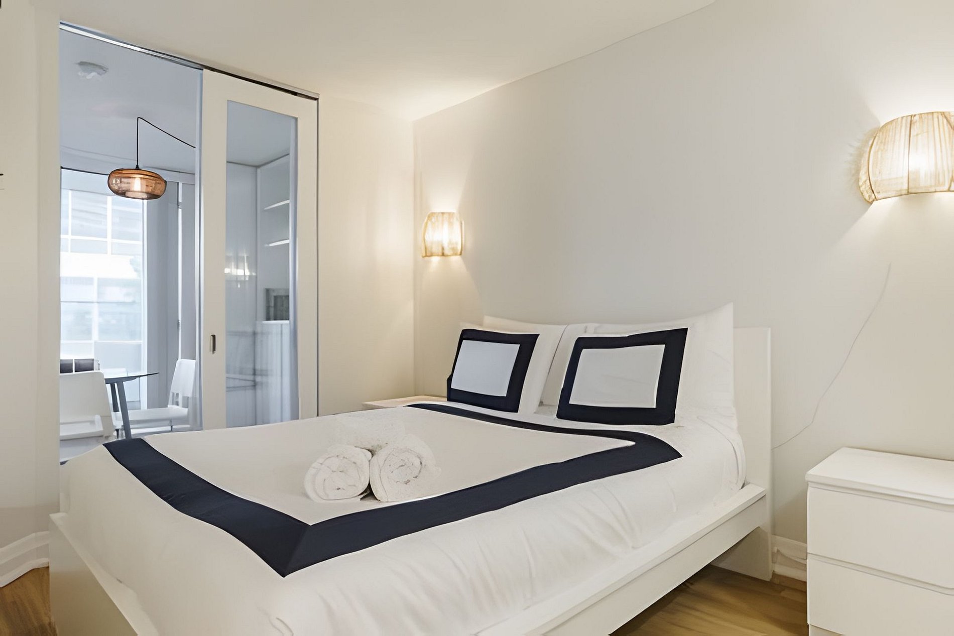 Descubra nuestro elegante apartamento de 1 dormitorio, estudio y 2 baños, perfectamente ubicado en el vibrante centro de Toronto. El dormitorio principal cuenta con una cómoda cama tamaño queen, mientras que el estudio ofrece una acogedora cama doble, lo que lo convierte en el espacio ideal para su escapada.