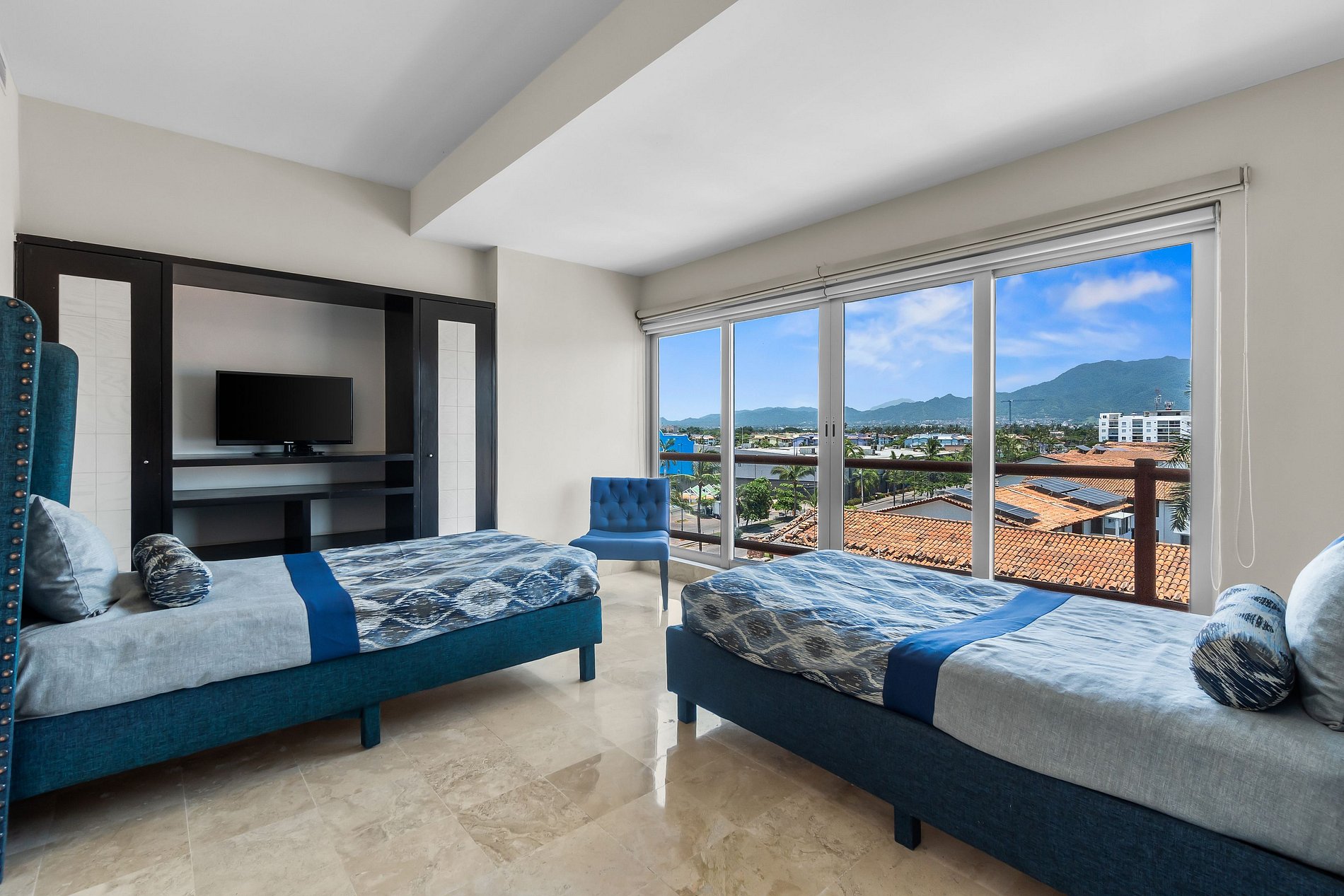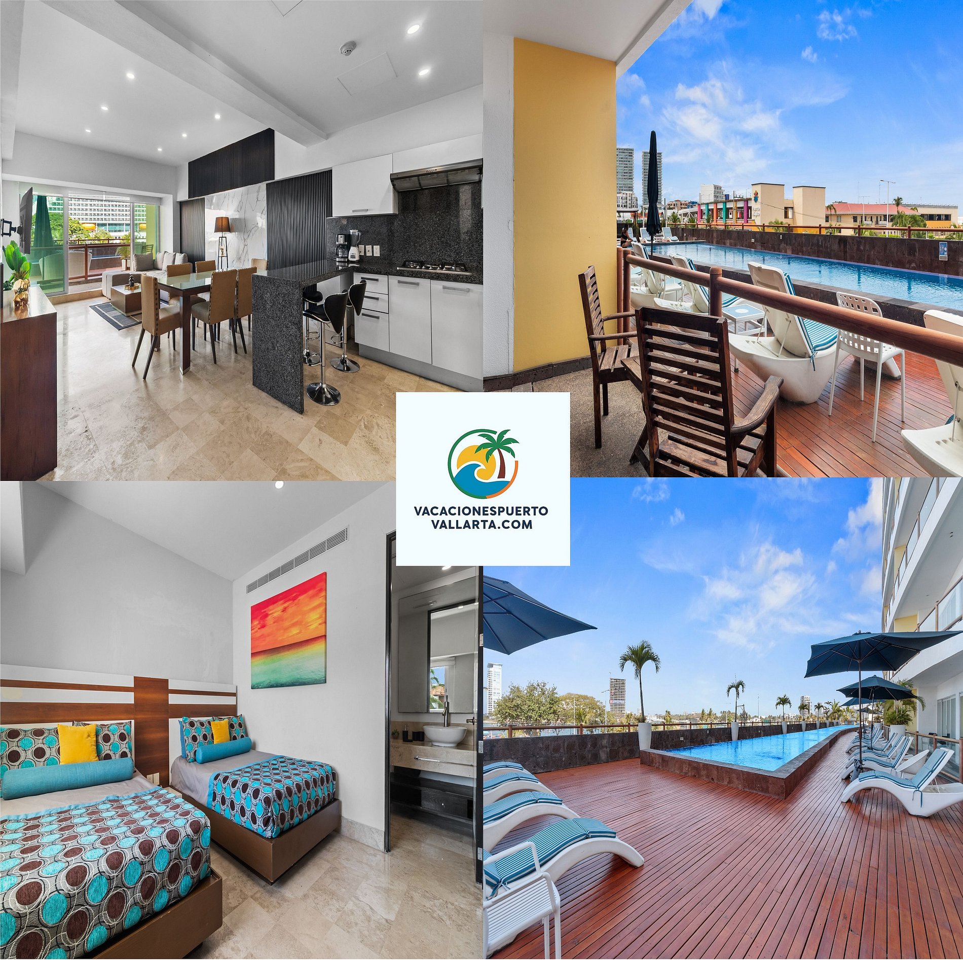 Disfrute de la vista al mar en este elegante apartamento de 4 recámaras y 4 baños en la Terraza 12, dos pisos diferentes, a 3 minutos de la playa en la Zona Hotelera de Puerto Vallarta. Perfecto para familias o grupos, con capacidad para 12 personas.