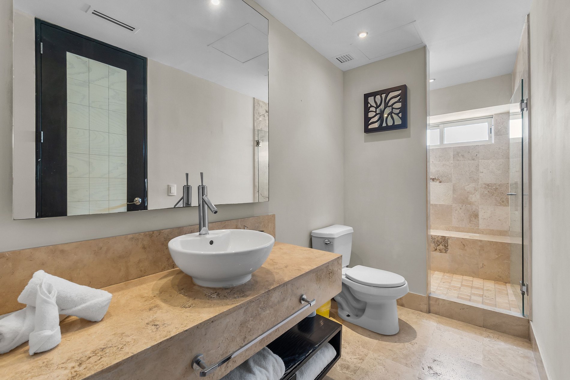 Cuenta con todo lo necesario para una estancia cómoda y placentera: cocina completamente equipada, aire acondicionado, blancos de calidad, centro de lavado, elevador, estacionamiento privado, amplia alberca, y gimnasio.