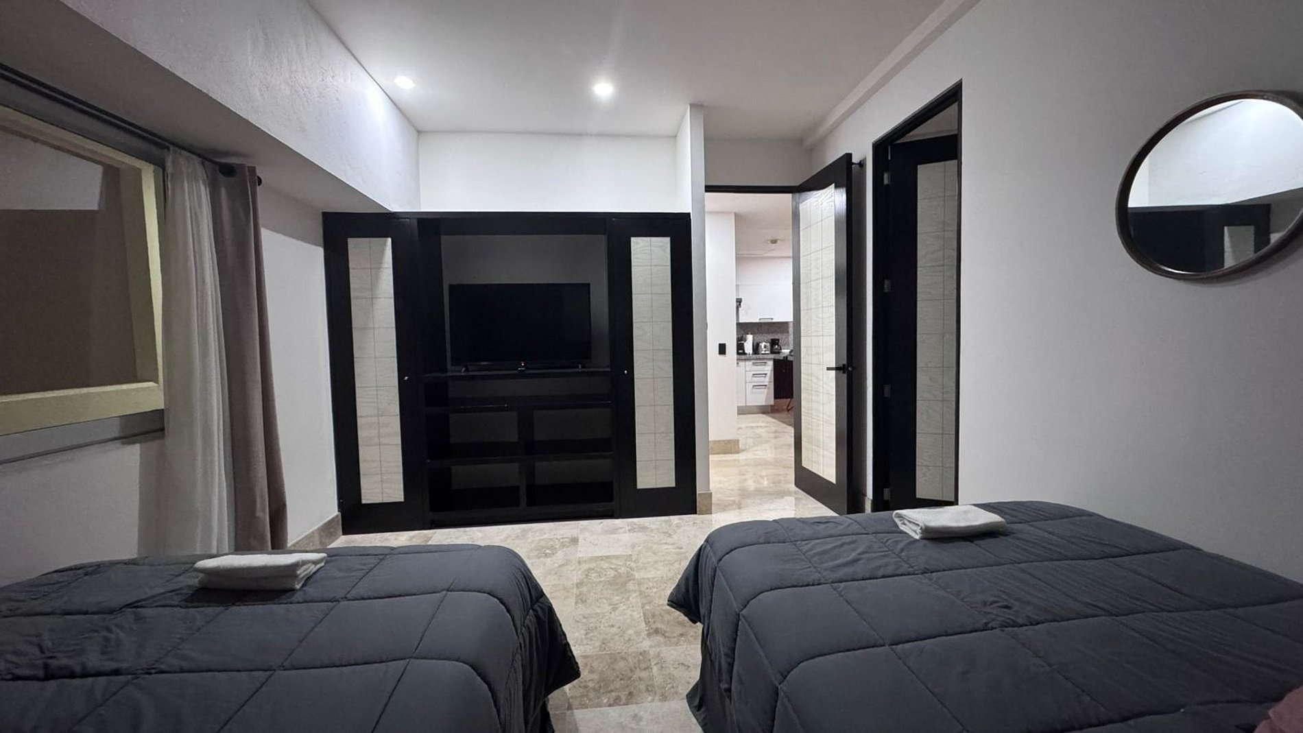 Disfrute de la vida junto a la playa, condominio de 2 recámaras y 2 baños en Deck12, a 3 minutos de la arena en la Zona Hotelera de Vallarta. Ideal para familias, para 6 personas con 1 cama King, 2 dobles y sofá cama.